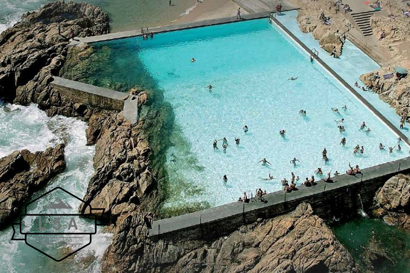 Impresionantes piscinas de agua salada, una infantil y otra de adultos, localizadas en la Playa de Leça, en la Freguesia de Leça da Palmeira (Matosinhos).obra de Siza Vieira, son otra de las visitas recomendadas, donde se puede aprovechar para pasar el día.